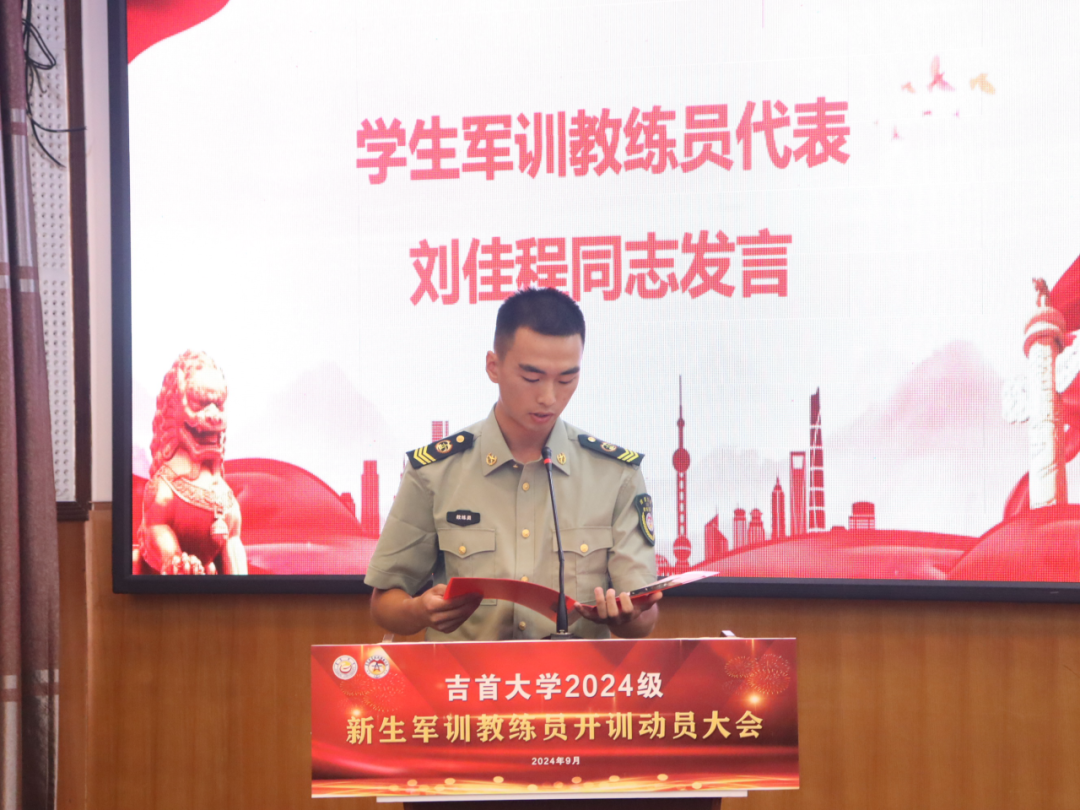 刘佳程表示,为成为一名合格教练员,近一年来,我们日复一日的并肩训练,见证了自身的蜕变。练兵千日,用在一朝,为确保此次军训不负众望,高质量达成目标任务,我们全体教练员向在座的各位领导、老师郑重表决心如下: