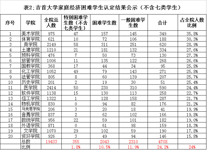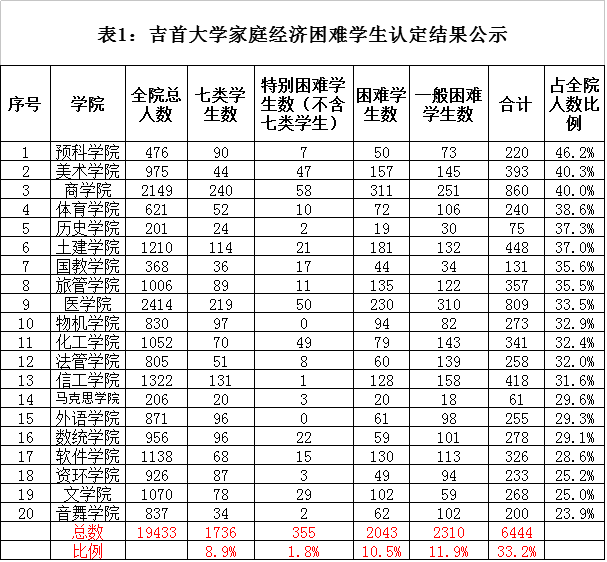 按照学校学生资助管理中心工作下发的《关于做好2017年家庭经济困难学生认定工作的通知》,各学院家庭经济困难学生认定工作组、班级评议小组对家庭经济困难学生信息、资料进行了认定、审核、公示,现将各学院上报的基本数据进行第一次公示,公示时间五天(10月20日-10月24日),意见受理邮箱276580473@qq.com,意见受理电话:0743-8564024。