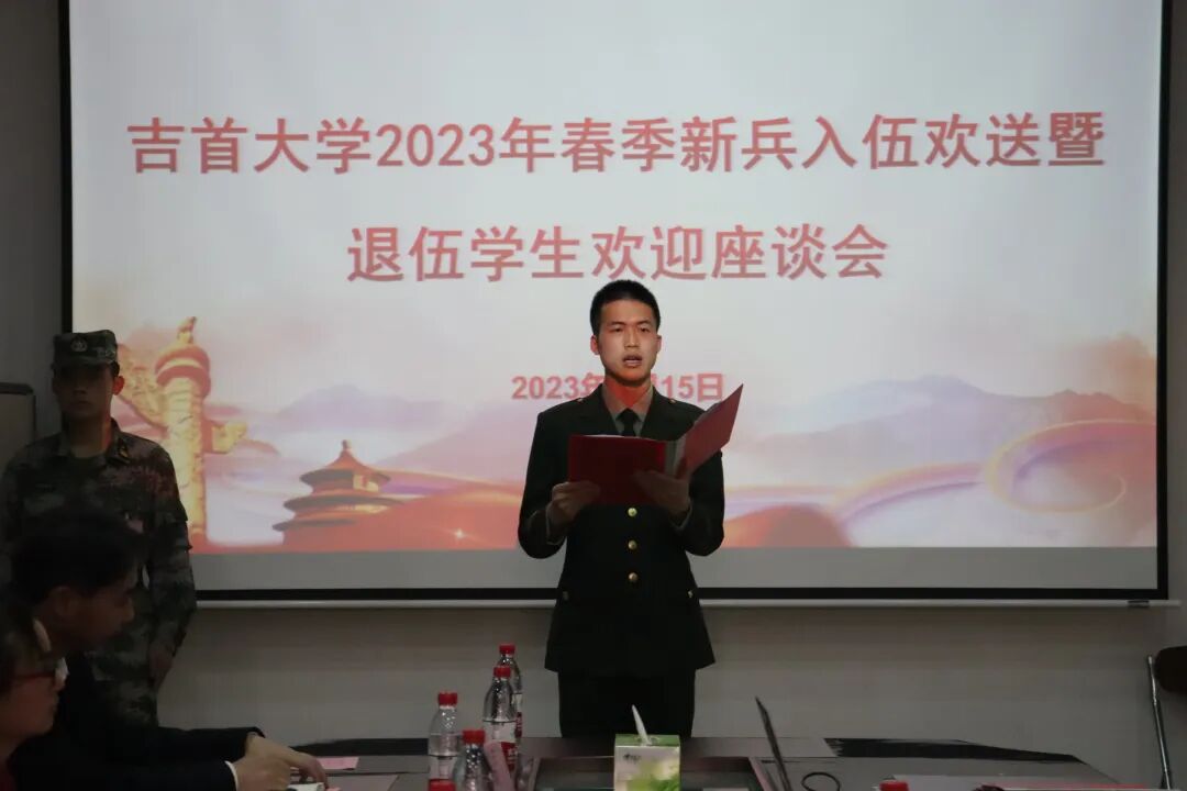 出席会议的人员有:校党委委员、副校长、校工会主席王艳,党委学生工作部、武装部部长欧阳大文,党委学生工作部、武装部副部长陈敏灵,各学院分管学生工作副书记、武装专干,2023年春季入伍学生、2023年春季退伍学生。本次会议由欧阳大文主持。