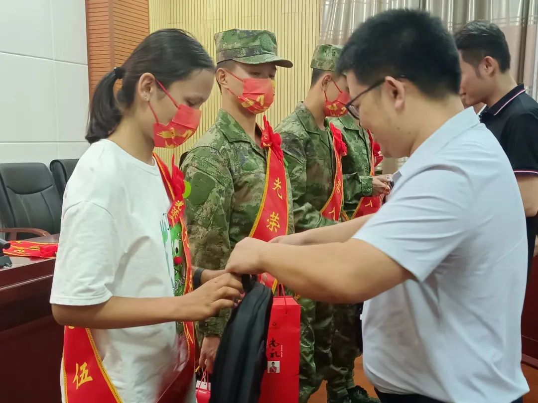 为入伍学生佩戴绶带