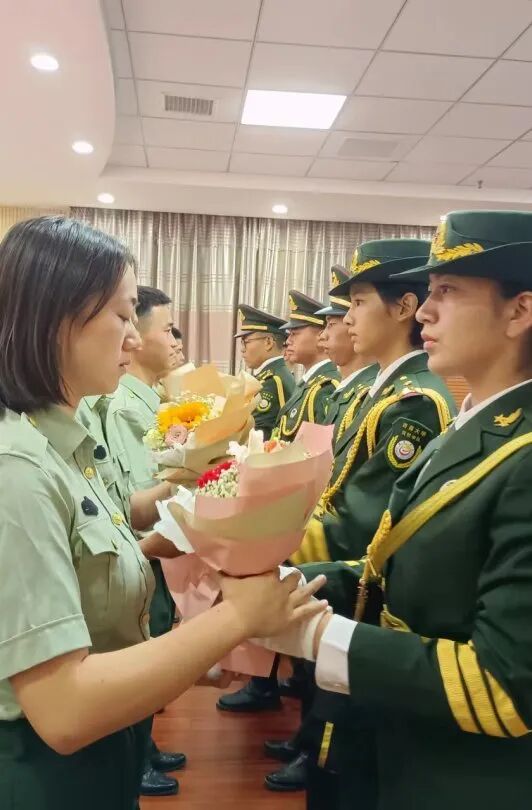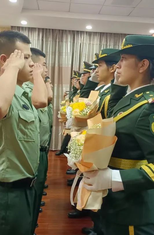 仪仗中队给退伍学生献花