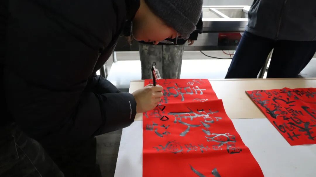 (图为队员们书写对联)