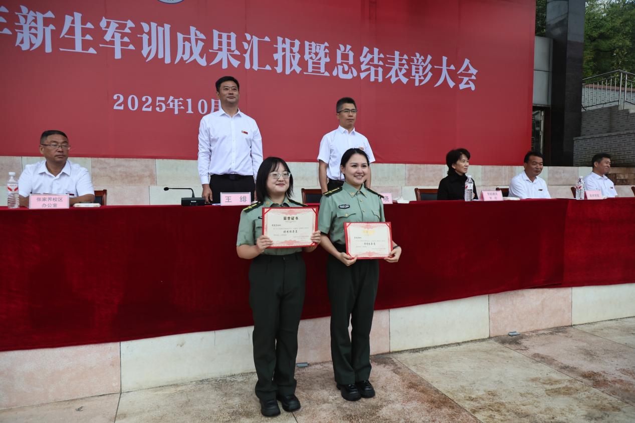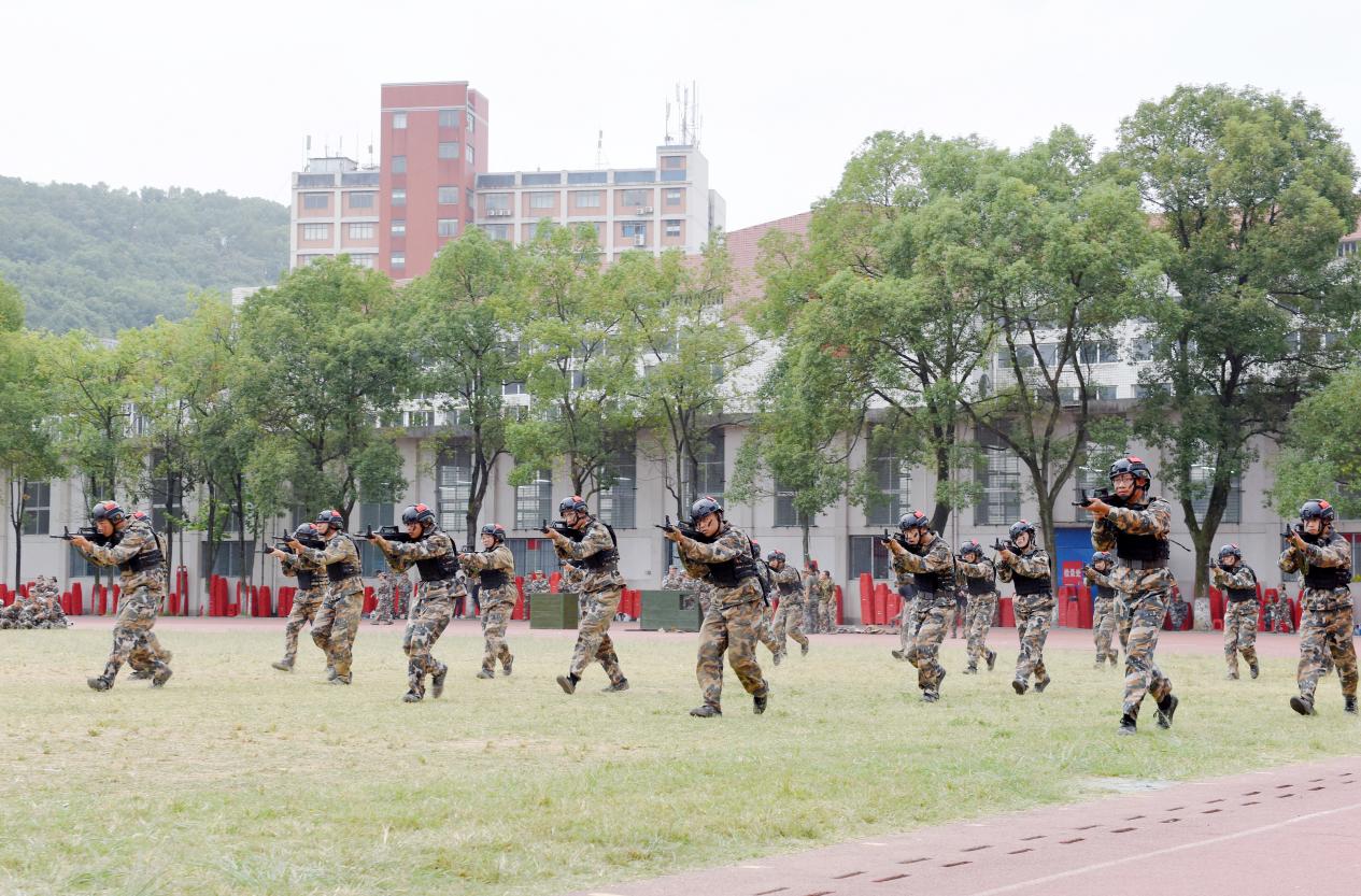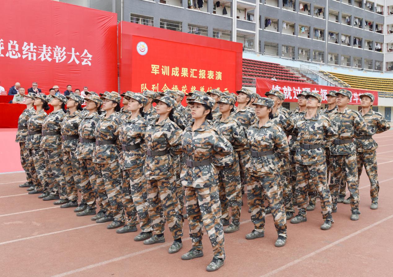 在随后的军训成果汇报表演中,分列式、队列表演、军歌朗诵、捕俘拳、匕首操、应急棍、战术表演等科目轮番上演,展现了新生们经过21天军事训练后焕然一新的精神面貌和过硬的军事素养。大会对军训期间涌现出的先进集体和个人进行表彰。军训团团长毛政伟宣读表彰决定。与会领导、嘉宾