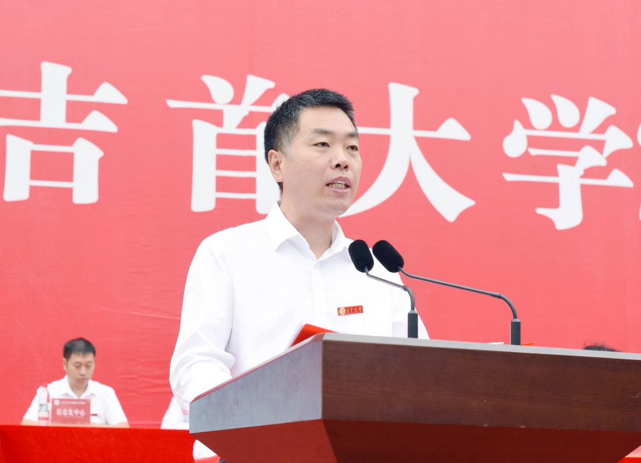 校党委副书记、校长方东辉详细介绍了学校深厚的历史文化底蕴、综合性办学格局、高质量的人才培养成果以及巨大的发展潜力,并围绕“五个学会”对新生提出殷切期望:学会修德,树立“大德”,恪守“公德”,涵养“私德”;学会学习,培养自主学习能力,拓宽跨学科视野,坚持知行合一;学会生活,适应集体生活,处理好人际关系,保持身心健康;学会自律,做好目标与时间管理,坚守规则底线与学术诚信;学会发展,尽早规划职业生涯,全面提升核心素养,融入家国大局。