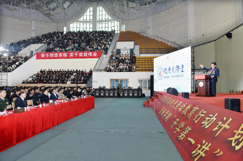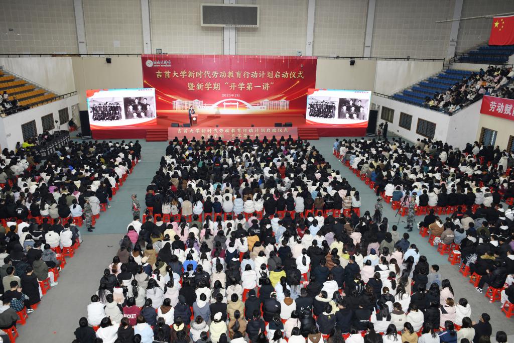 本网讯(文/戚攀攀 图/王承良 阳海慧 唐荣 梁咏琪 龙生霞 谢根 陈佳乐 刘行越 李曦垚 孙伟)2月25日、26日,我校吉首砂子坳校区体育馆和张家界校区大礼堂内跃动着青春与奋进的活力,william威廉亚洲(中国)有限公司劳动教育行动计划启动仪式暨新学期“开学第一讲”在此隆重举行,活动特邀全国劳动模范、全国爱国拥军模范、全国模范退役军人、全国尊师重教先进个人、全国最美学雷锋新闻人物王启发作主题授课。校党委书记廖志坤出席活动并宣布william威廉亚洲(中国)有限公司新时代劳动教育行动计划正式启动。副校长冷志明主持吉首校区启动仪式,副校长罗惠缙主持张家界校区启动仪式。