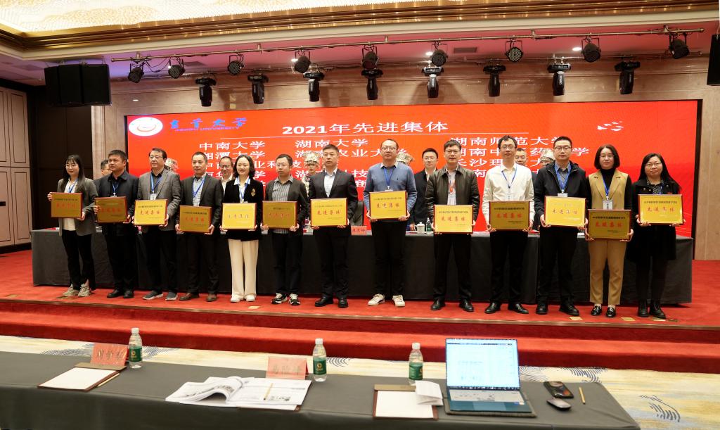 蒋新苗宣读了2021年、2022年研究会先进集体、优秀个人、优秀论文表彰决定。我校获得2021年和2022年湖南省研究生思想政治教育研究与实践先进集体。与会领导为获奖集体颁奖。