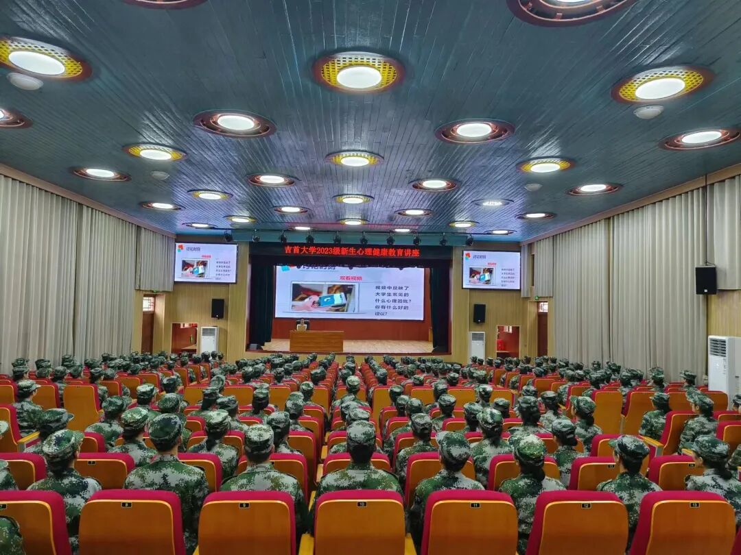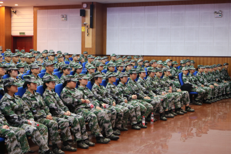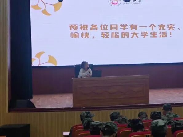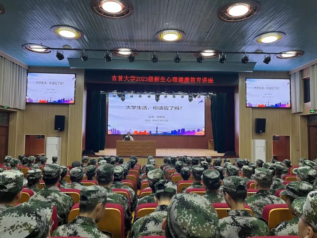 正值军训,2023级新生们坐姿端正,讲座气氛严肃。在老师的指导下,他们慢慢放松。老师们用亲切的言语、幽默的方式,激发了同学们的热情,使他们很快投入讲座。